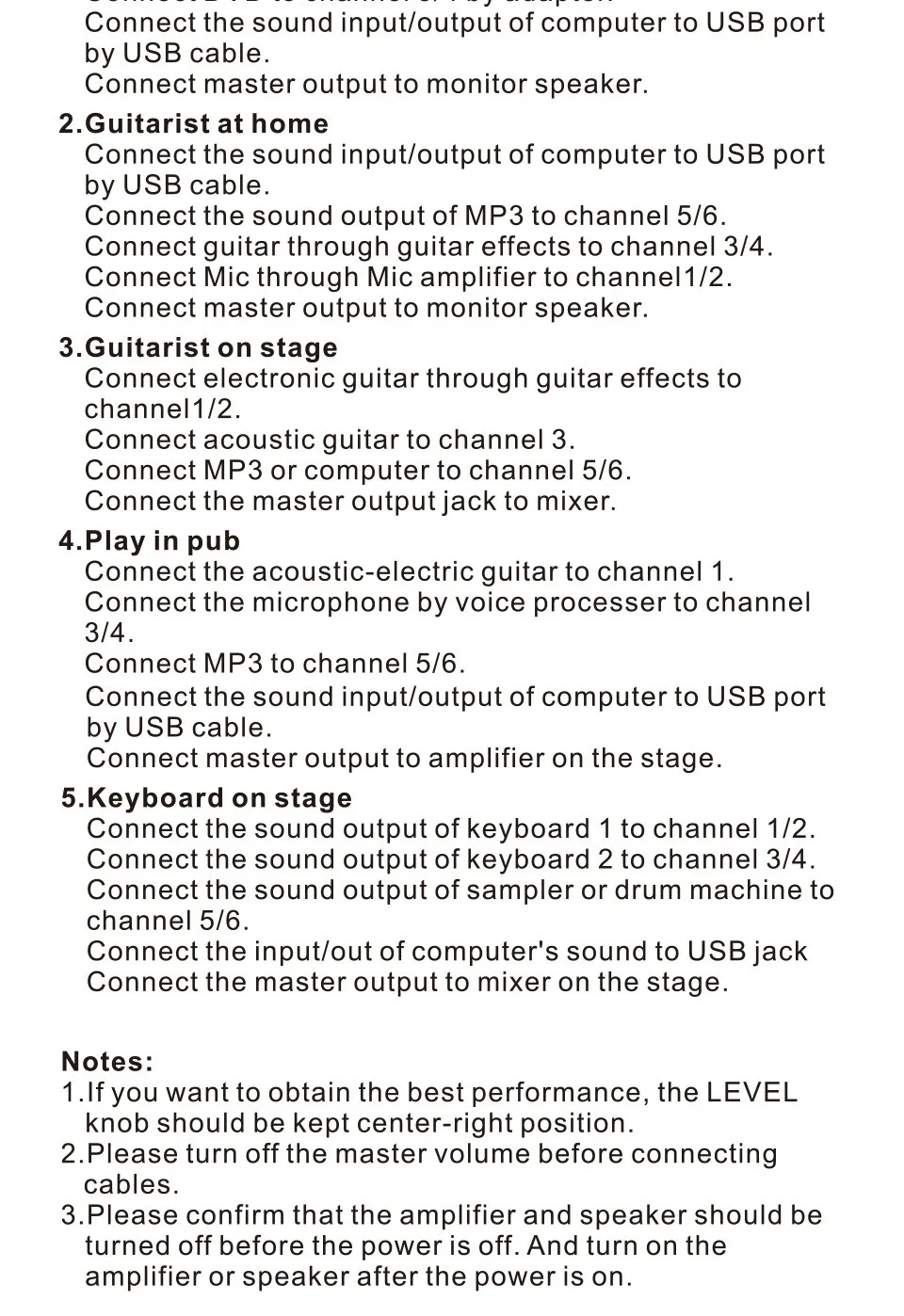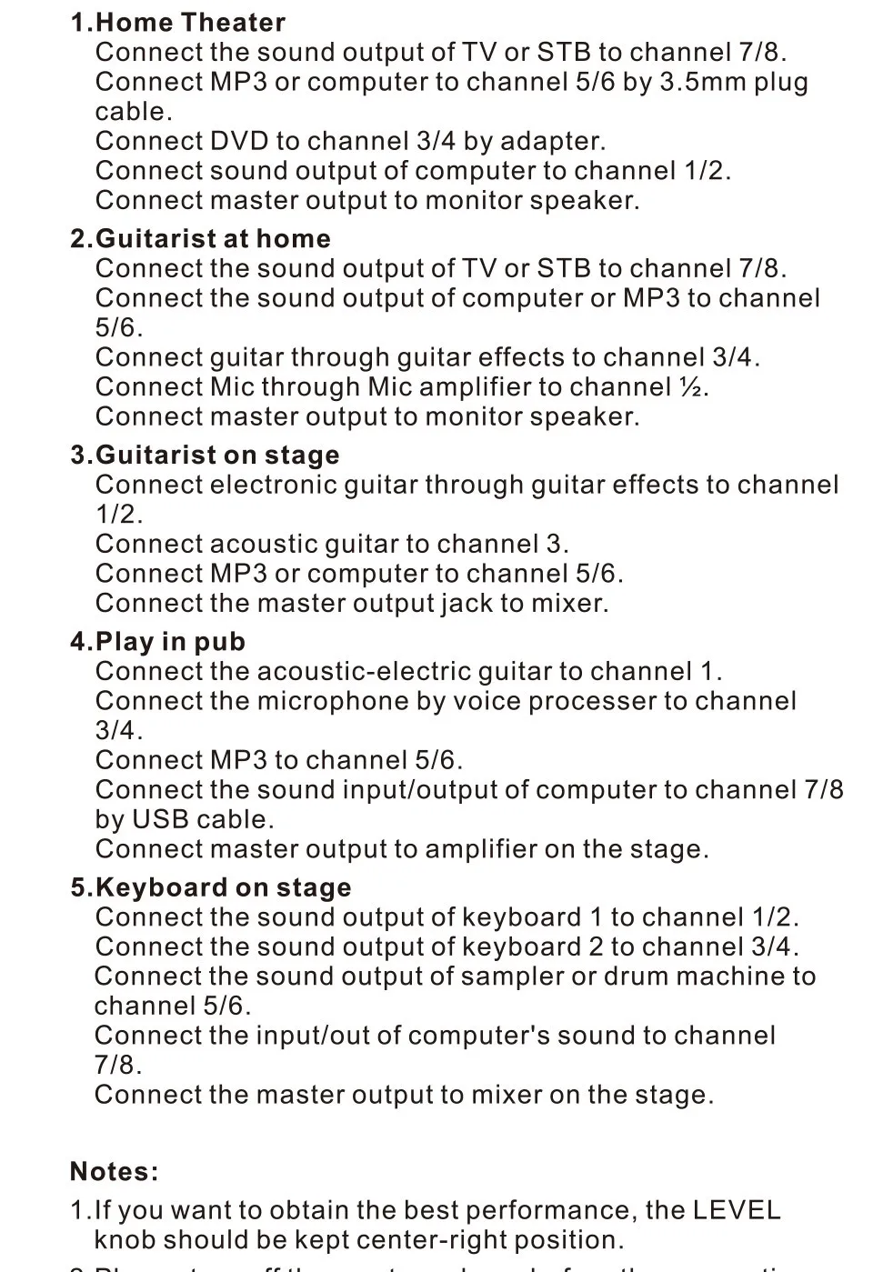 PMX-2, bilgisayar, TV, DVD, müzik aletleri gibi çeşitli ses cihazlarını ana çıkışa bağlamanızı sağlar. Her bir girişin seviyesini dengeli karışık ses seviyesine sahip olacak şekilde ayarlayabilirsiniz.