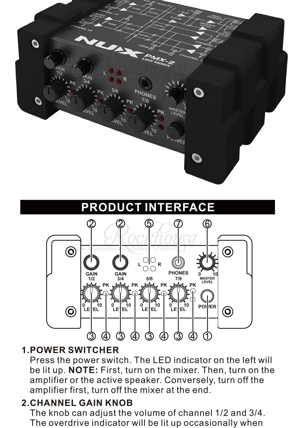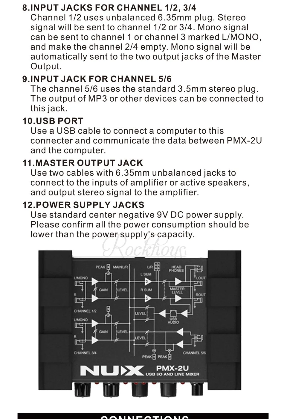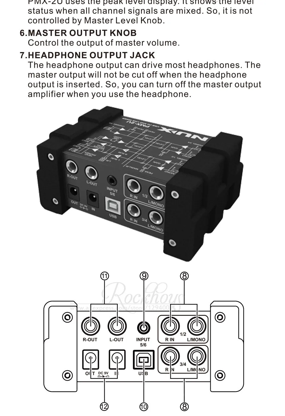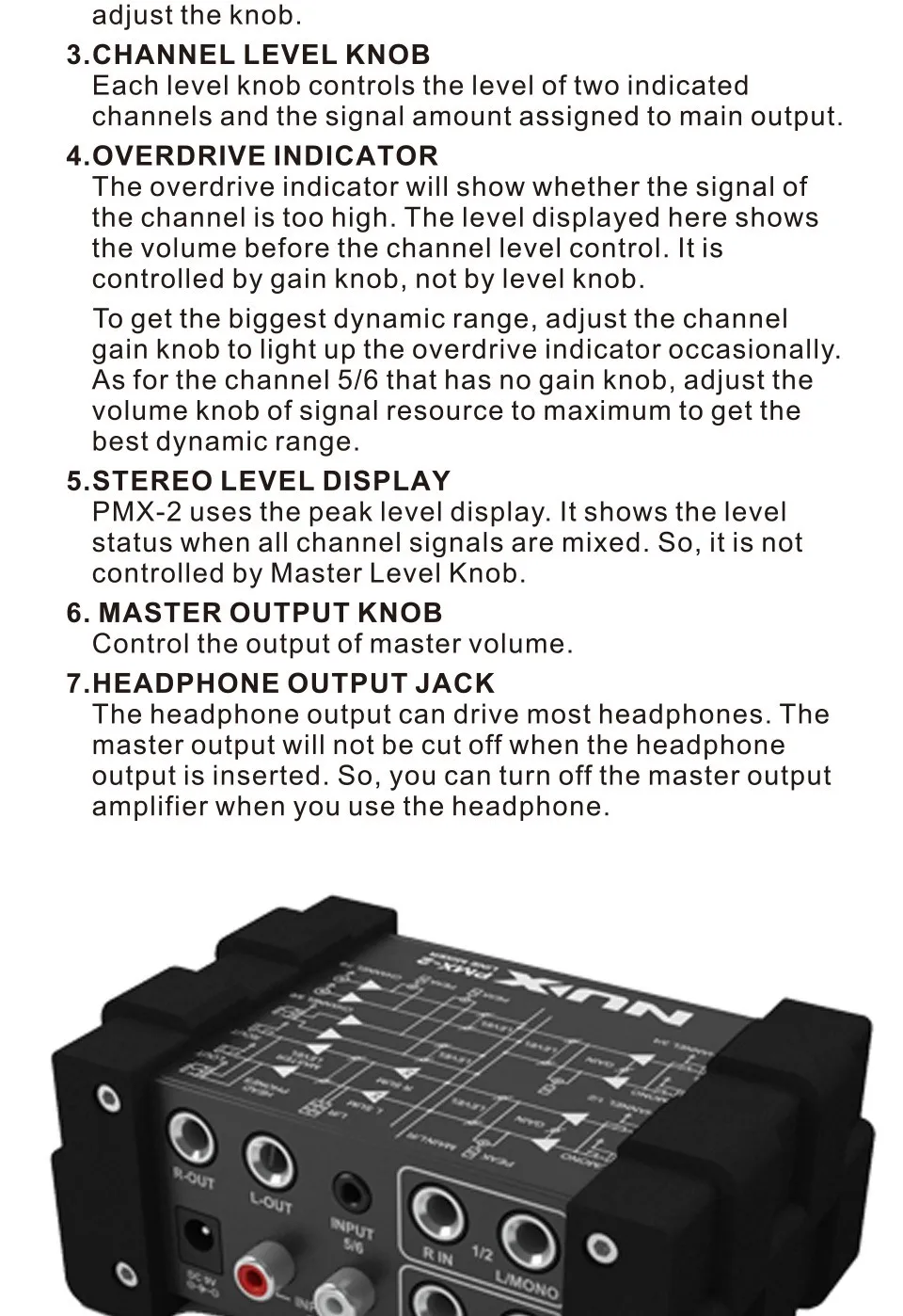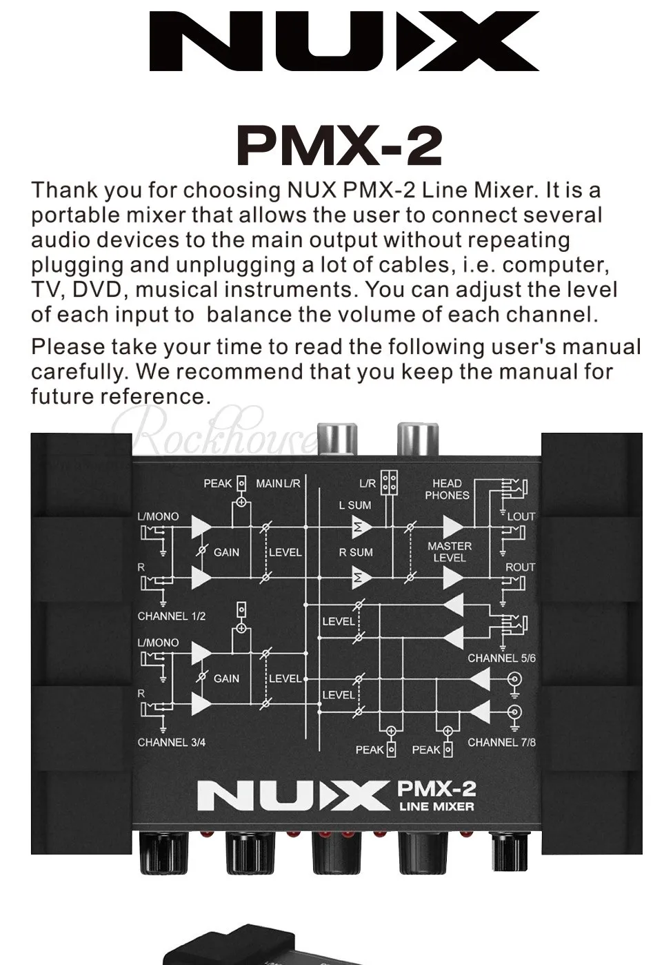 NUX PMX-2 / PMX-2U I / O Hat Mikseri mini mikser konsolu USB ses konsolu 6/8 giriş 2 çıkış ses seviyesi göstergesi seviye kontrolü