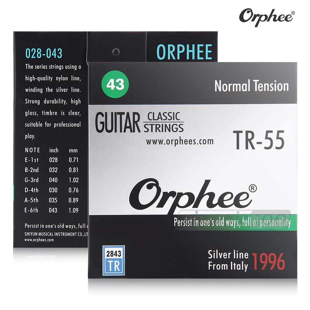 Outside material:Imported silver jacketed wire Inside material :Imported nylon Packaging :Paper box Inner packing :Vacuum packaging The strings of ORPHEE-TR series has a fast- string tuning,stable pitch, which enables good performance. The alloy surface is oxidation-proof for its multi-layers processing. MODEL NOTE 1-E 2-B 3-G 4-D 5-A 6-E TR-55 inch 028 032 040 030 035 043 mm 0.71 0.81 1.02 0.76 0.89 1.09